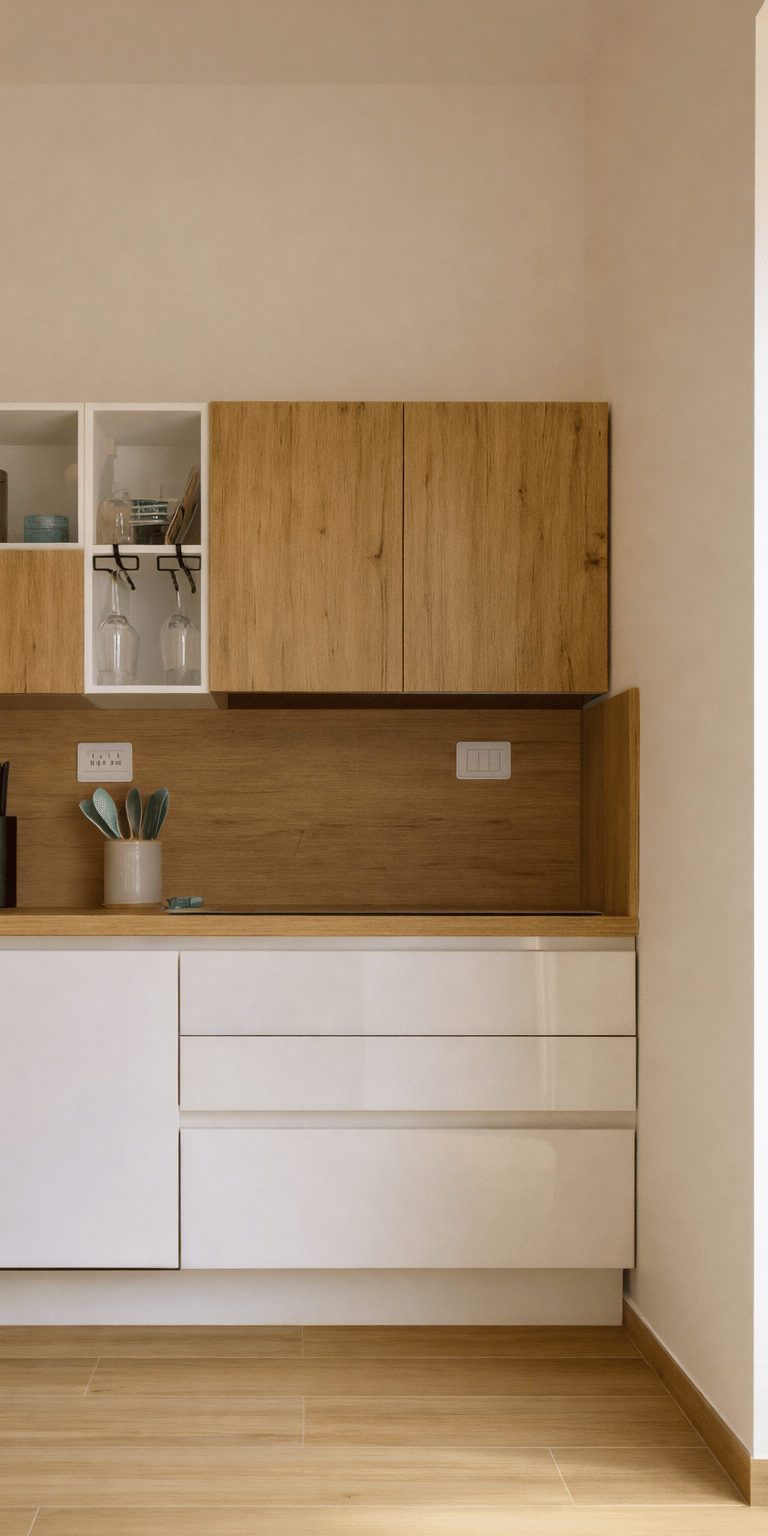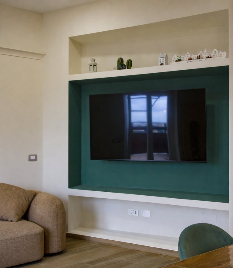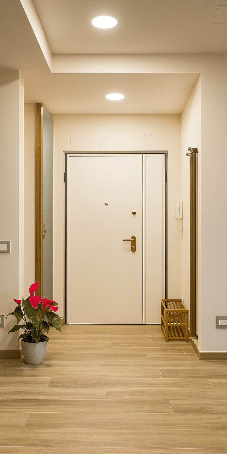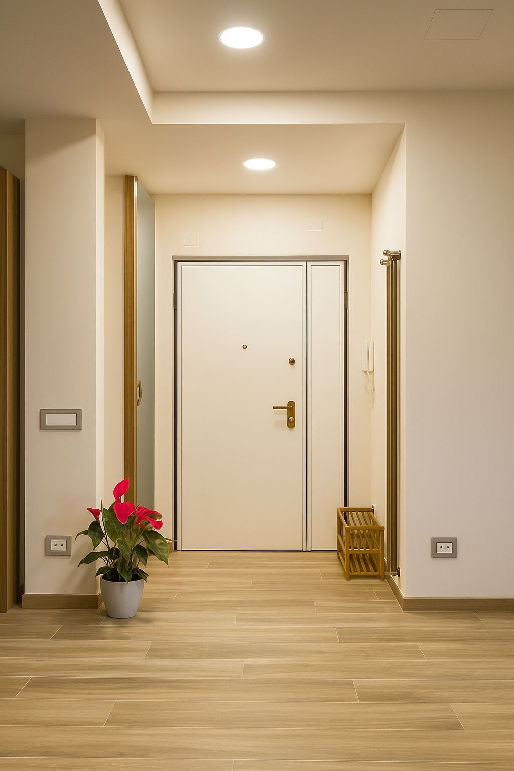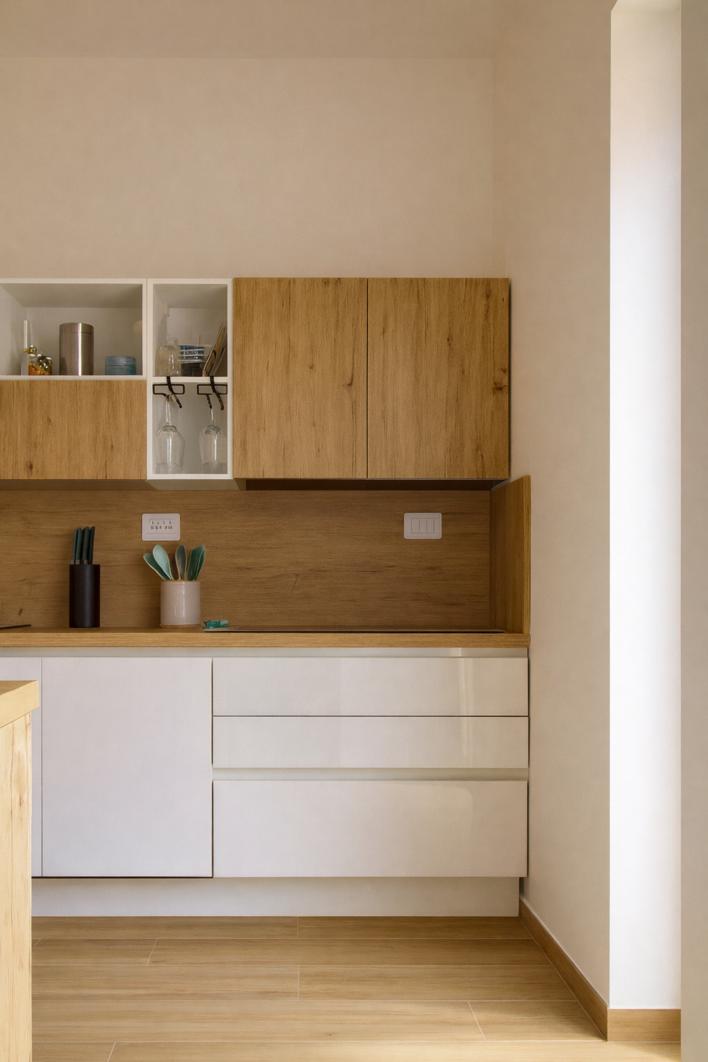 L’intervento ha previsto il rinnovamento integrale degli ambienti con attenzione a funzionalità e continuità estetica: pavimenti effetto legno, omogeneo in tutta l'abitazione per dare un forte senso di continuità , finiture essenziali e arredi su misura. I bagni sono stati ripensati in chiave contemporanea con gres effetto pietra, sanitari sospesi e particolare rubinetteria e arredo per dare seguito alle volontà ed esigenze dei clienti. La scelta dei colori e dei materiali si ripete per tutto l'appartamento per un risultato pulito, luminoso e coerente.