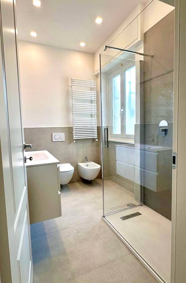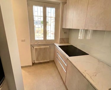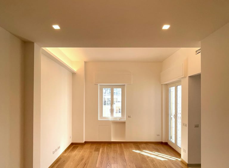 Il progetto ha previsto una completa ristrutturazione con distribuzione degli ambienti in base alle esigenze del cliente. Le pavimentazioni originali in marmo e legno sono state oggetto di un attento intervento di restauro e trattamento superficiale che ne ha restituito la brillantezza e la bellezza originarie, valorizzando il carattere autentico degli spazi. Luce e materia si fondono in un insieme armonioso di eleganza e contemporaneità .