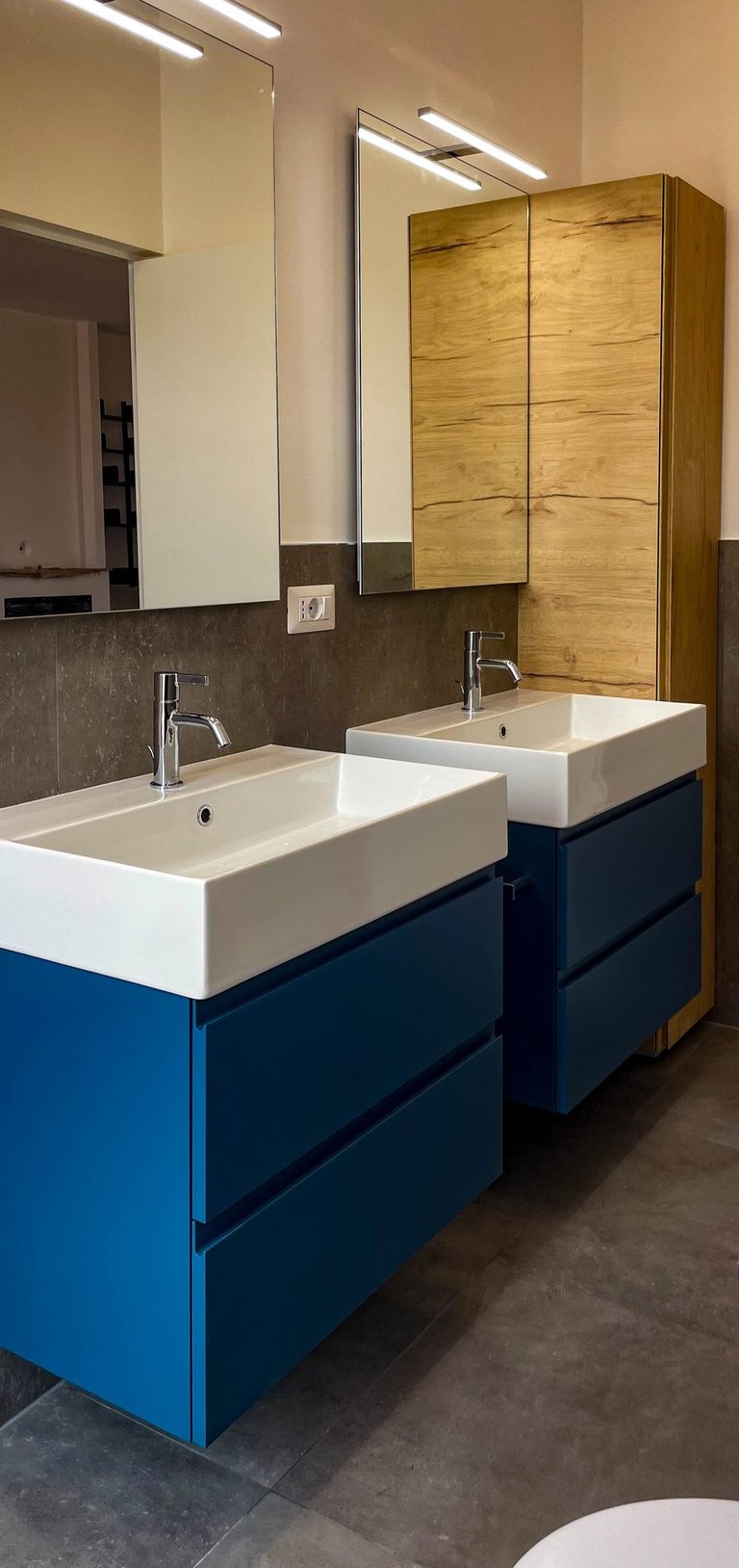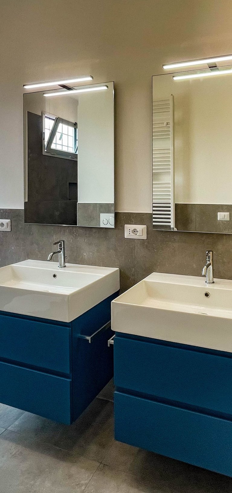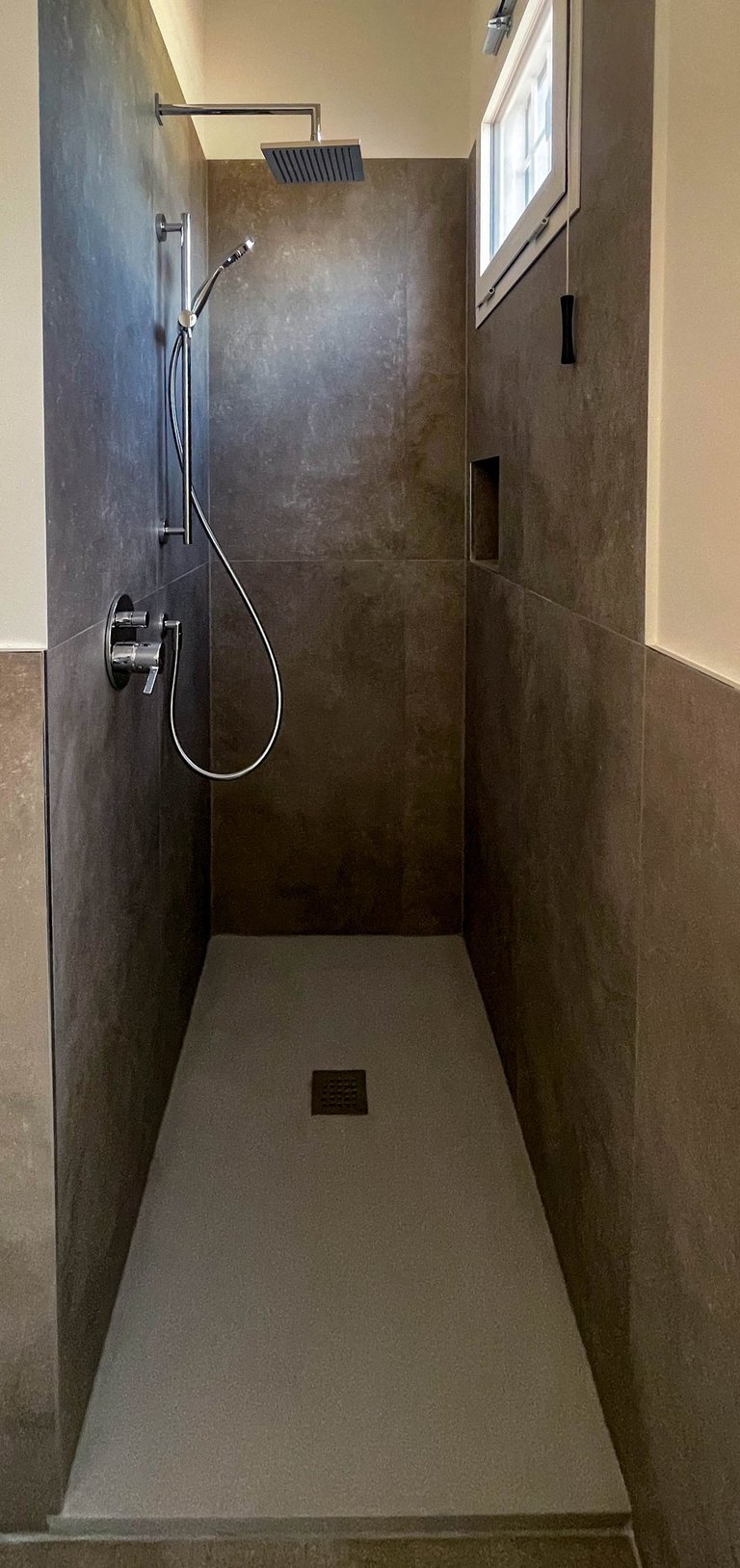 Particolare attenzione è stata dedicata al comfort termico: il solaio che separa l’abitazione dal terrazzo è stato completamente isolato, garantendo un’elevata efficienza energetica in ogni stagione. La zona notte, separata da quella giorno tramite un sistema di infissi su misura, mantiene un dialogo visivo e spaziale continuo — in perfetto stile loft — ma può all’occorrenza diventare uno spazio più raccolto e privato. L’accesso esclusivo al secondo terrazzo avviene solo dalla zona notte, trasformandola in una vera e propria suite con affaccio privato sul cielo di Roma, con affaccio su Villa Veschi.