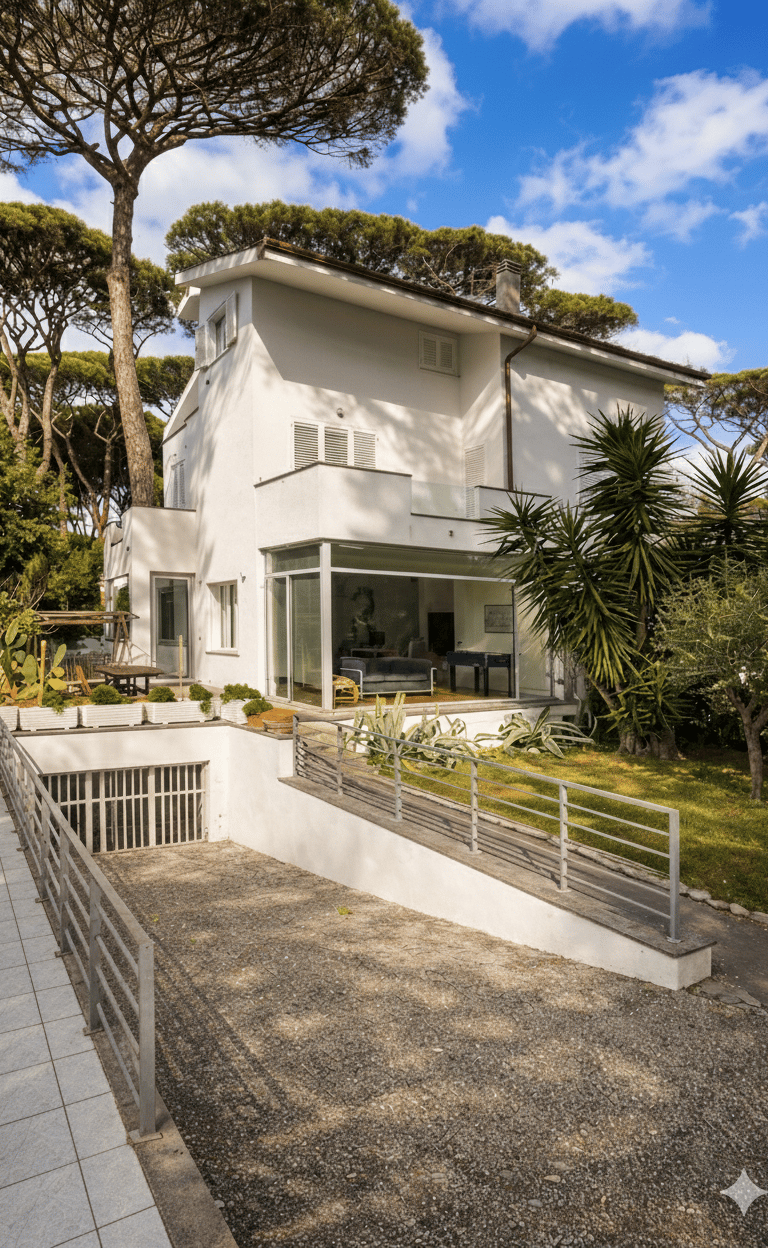 Avvolta dal silenzio della pineta monumentale di Fregene, questa residenza storica ritrova nuova vita attraverso un progetto di ristrutturazione e ampliamento che ne rispetta la memoria, reinterpretandola con sensibilità contemporanea. Gli spazi si aprono alla luce e al paesaggio: ampie vetrate trasformano il confine tra interno ed esterno in una soglia trasparente, dove la natura entra a far parte dell’abitare quotidiano. Materiali naturali, finiture raffinate e dettagli, dialogano armoniosamente con l’ambiente circostante, restituendo un’atmosfera calda, luminosa e autentica. La casa diventa così un rifugio elegante e discreto, in perfetto equilibrio tra storia, architettura e natura.